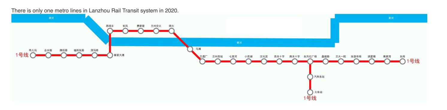 Lanzhou Metro System has one line and 20 stations by 2019. Line 2 is under construction.